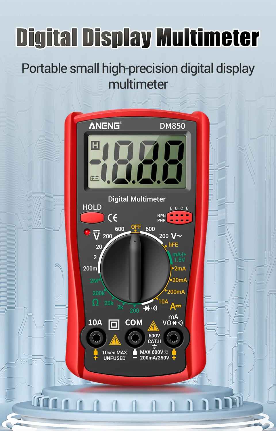 A versatile digital multimeter designed for measuring voltage, current, and resistance across electrical circuits. Perfect for troubleshooting electronics, testing batteries, and diagnosing electrical issues in home and professional settings. Features a clear digital display for easy reading and durable construction built to withstand regular use. Ideal for electricians, hobbyists, and anyone working with electrical systems.
